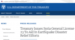 Breaking: Finally, U.S. half listens to International Communities’ Cries to Lift Inhumane Syria Sanctions | Treasury Issues Syria General License 23 To Aid In Earthquake Disaster Relief Efforts for 180 days.