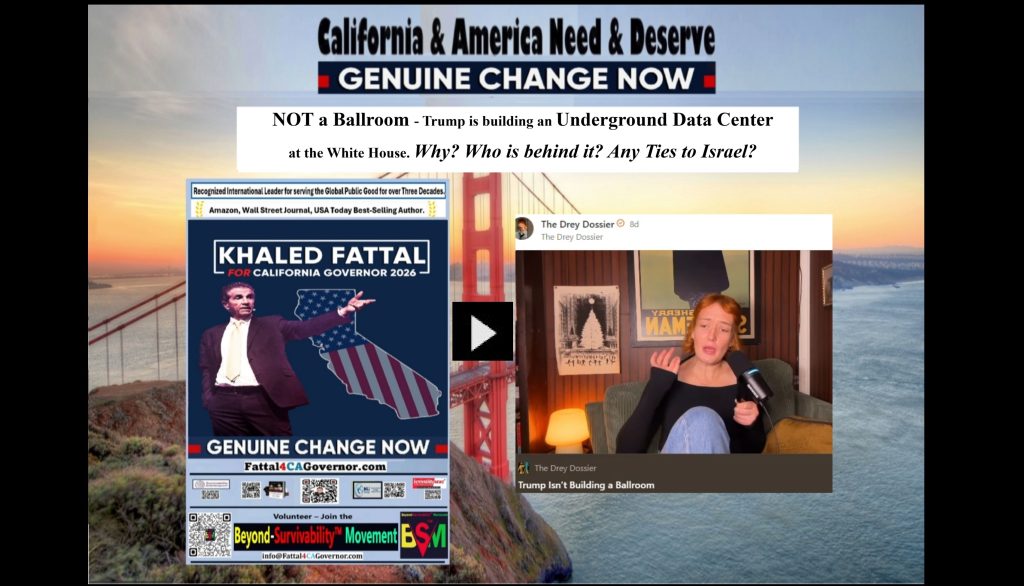 NOT a Ballroom – Pres. Trump is building an Underground Data Center at the White House. Why? Who is behind it? Any Ties to Israel? | Survivability News Citizen Journalism & Khaled Fattal 4 California Governor. (Video)