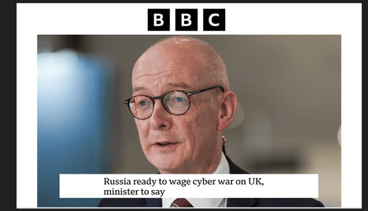 The BBC reported on McFadden’s statement on its website with the title “Russia ready to wage cyber war on UK, minister to say”.